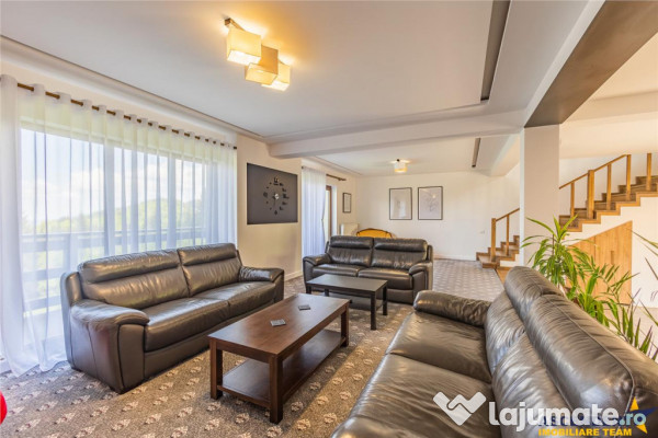- La parter 2 livinguri generoase de 100 mp utili open space cu bucatarie, loc de servit masa si zona de recreere