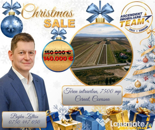 Teren intravilan desfasurat pe o suprafata de 7.500 mp, in comuna Cernat, la vecinetatea municipiului Targu Secuiesc, pe langa DN11 (E574).