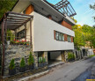 Terenul constructiei este amenajat cu terase in trepte, delimitate de ziduri si jardiniere din beton armat, placate cu piatra naturala.