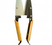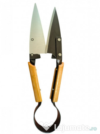 Această foarfecă de tuns oi are mâner din lemn.