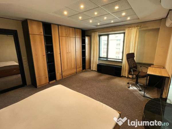 DESCRIERE INTERIOARĂ: Garsoniera este decomandată și renovată recent. Spațiul este eficient organizat: zonă de dormit cu pat matrimonial și dressing, colț de lucru cu birou, zonă de luat masa și spațiu de relaxare. Bucătăria este separată, mobilată pe comandă și complet echipată: plită, cuptor, cuptor cu microunde, combină frigorifică, MAȘINĂ DE SPĂLAT RUFE și MAȘINĂ DE SPĂLAT VASE. Baia este dotată cu cadă, placaje ceramice moderne și ușă de termopan cu geam oglindă. Balconul este închis și curat.