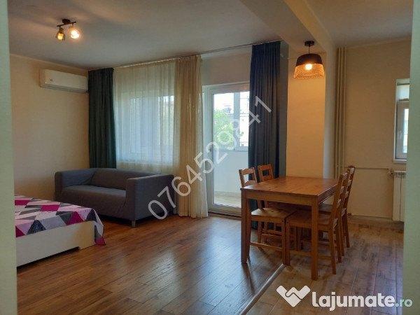 Balcon inchis in termopan,aer conditionat,canapea,pat matrimonial,dressing,spatii depozitare,plita pe gaz+cuptor electric+hota incorporate,masina de spalat,combina frigorifica.
