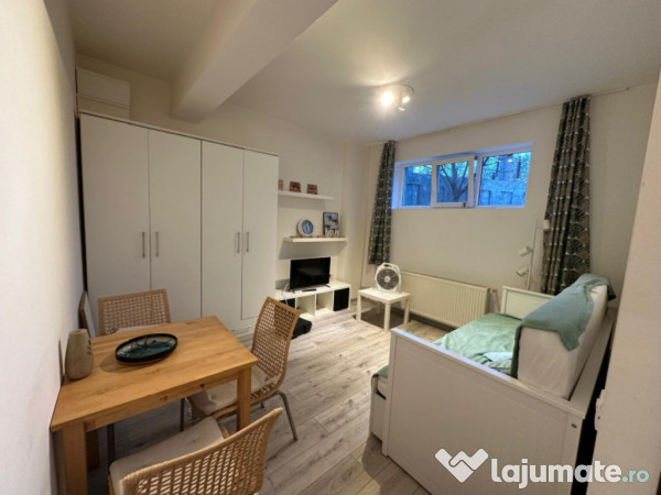 Se închiriază garsonieră la demisol , fără istoric de refulări, inundație sau igrasie. Este decomandată,