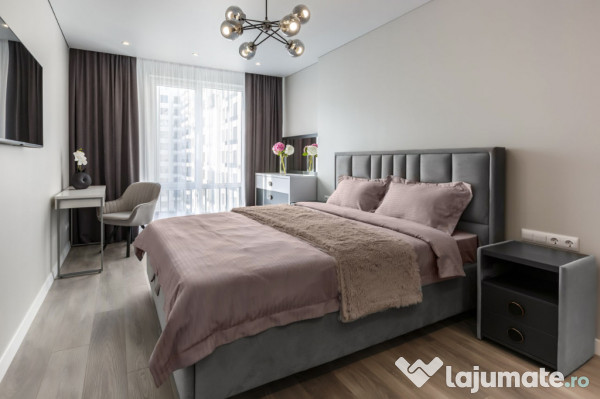 etajul 4 din 10, decomandată. Cameră luminoasă, bucătărie mobilată, baie modernă. Dotată cu aer condiționat,