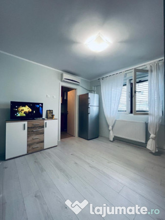 - garsoniera se vinde mobilata si utilata: masina de spalat vase mica, ferestre cu obloane PVC, masina spalat rufe, frigider, pat, tv, aer conditionat;