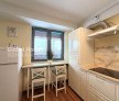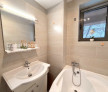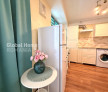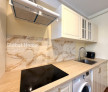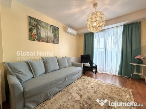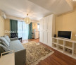 Garsoniera este complet mobilată și utilată, cu zonă de zi generoasă, spații de depozitare bine integrate și bucătărie funcțională. Bucătăria este echipată cu plită, hotă, mașină de spălat rufe și frigider, iar zona de living beneficiază de aer condiționat și lumină naturală din plin. Baia este dotată cu cadă și finisaje neutre, ușor de întreținut.