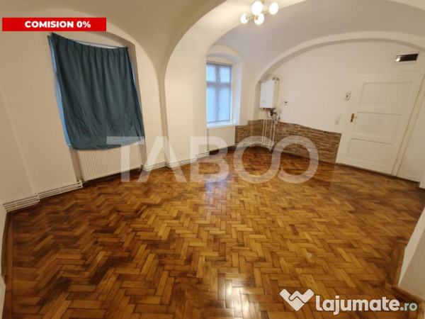 TABOO Imobiliare propune o garsoniera de inchiriat cu 1 camera, nedecomandata, situata in localitatea Sibiu, zona Centrul Istoric, aflata la parter intr -un imobil tip casa/vila cu regim de inaltime pe Parter + 1 Etaje; anul constructiei 1920, structura caramida. Suprafata utila de 33 mp.