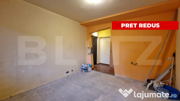 Garsoniera necesită renovare, oferind posibilitatea de a o amenaja exact după preferințele viitorului proprietar și de a valorifica fiecare metru pătrat.