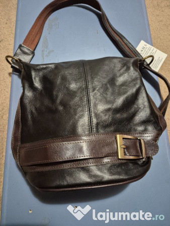 Geanta DASHA, noua, cu eticheta, din piele naturala, culoare neagra cu insertii maro. Geanta se poate transforma intr-un mini rucsac. Un accesoriu practic si elegant pentru orice ocazie.