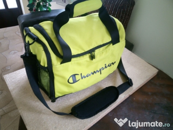 Geantă sport Champion, model de tip "duffel" sau geantă de antrenament, de dimensiuni medii. Utilizat cu grija pentru o scurta perioada insa in conditie foarte buna. Vand datorita inutilizarii. Această geantă este ideală pentru echipamentul de sală, antrenamente sportive sau ca geantă de călătorie pentru weekend.