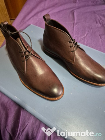 Ghete barbatesti de la Omnio Atelier, fabricate din piele naturala de cea mai buna calitate. Acestea sunt noi, marimea 46. Culoarea lor este maro, iar designul lor este elegant si durabil.