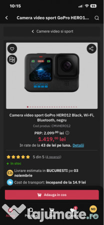 Vând GoPro Hero 12 Black, folosită doar de 1-2 ori, în stare impecabilă.