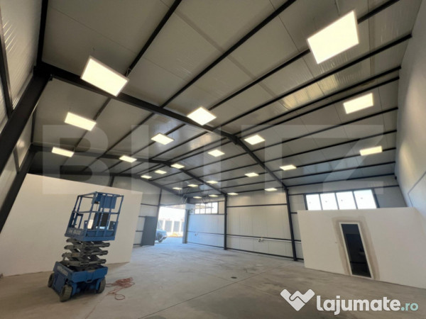 Dotata cu curent trifazat, ideal pentru echipamente, compartimentare open space, dispunde de birou si 2 grupuri sanitare, teren imprejmuit, toate aceste caracteristici fac din acest imobil unul pretabil pentru activitati de tip depozitare, productie mica, service auto etc.