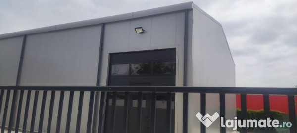 Hala constructie 2023 Bragadiru langa DN6, curte 300 mp betonata, porti industriale electrice ( 2 buc 3,5 * 4 metri ), birou,toaleta,acces TIR, curent trifazic 30 kw, 500 mp curte