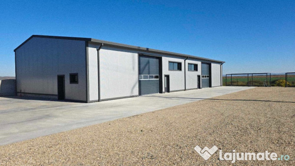 Proprietatea dispune de un teren cu suprafață totală de 3300 mp , construcție nouă, hală premium cu o suprafață construită de 450 mp, suprafața utilă 430 mp, proprietate, incinta curte cu suprafață betonată de aproximativ 2000 mp și suprafața curte totală, locuri de parcare 1300 mp, taluzată cu pietriș, front stradal generos de 45 m, acces de intrare cu poartă automată de intrare 8 m. Lângă această hală, clădire independentă de birouri în suprafață de 150 mp construiți, suprafața utilă 130 mp, compunerea acestei clădiri este de 4 încăperi: sală 45 mp și alte 3 încăperi fiecare cu baie proprie.