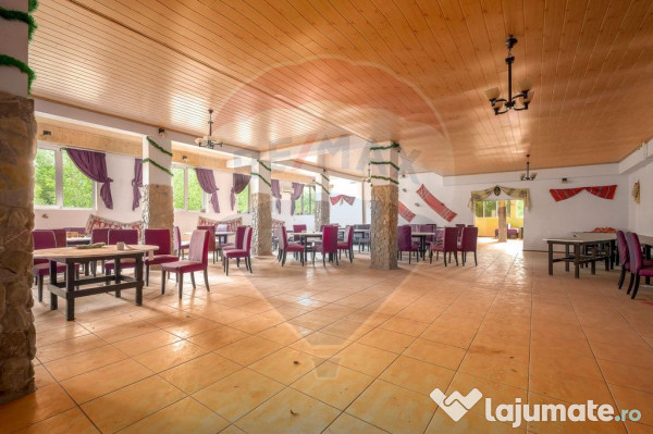 Imobilul este construcit cu structura de betin si BCA, restaurantul functional in prealabilk. La aceasta data necesita renovare totala. Tinand cont ca beneficiem de un spatiu liber in suprafata de 3580 mp se mai pot adauga diverse facilitati precum piscina, cort evenimente, gradina exterioara, etc.