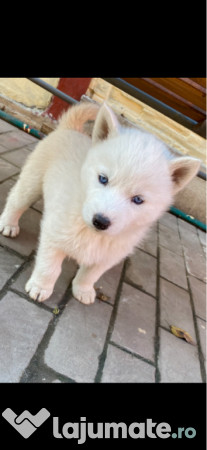 Vând un pui de Husky Siberian, sănătos, jucăuș și foarte prietenos. Are aproximativ 8 săptămâni și trăsături unice.