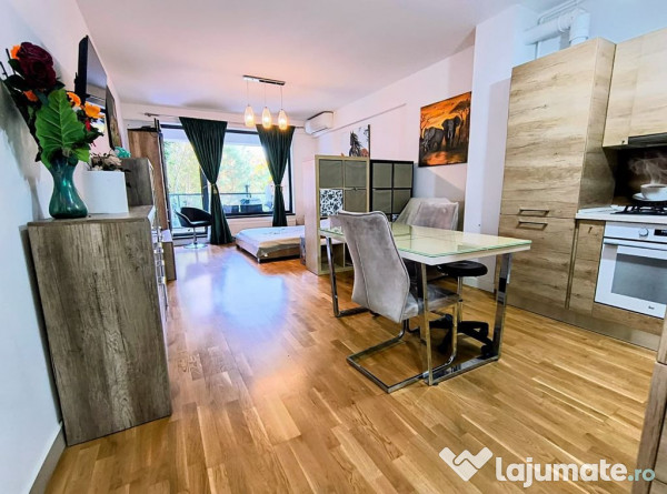 Studioul se afla la etajul 1/4, 42.27 mp utili + 9.62 mp balcon, St: 51.89, mobilat si utilat la cheie, parchet triplu stratificat, gresie faianță Marazzi, baterii Grohe, obiecte sanitare Ideal Standard, uși Pinum, centrală termica Buderus, A/C Hitachi, ferestre tripan, pereți din cărămidă izolație fonică și termică excelenta. Vederea este una deosebita catre o oaza de verdeata,