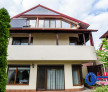Încă de la exterior, proprietatea transmite stabilitate și eleganță: gardul solid din BCA placat cu piatră naturală este completat de o poartă impunătoare din fier forjat.
