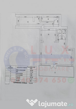 Compartimentare practică: sală cu bar, spații de depozitare, grupuri sanitare separate pe sexe, terasă generoasă de 39 mp