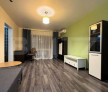 Bucătărie utilată modern, baie renovată și spații luminoase.