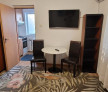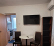 Garsoniera este mobilata si utilata (televizor LG SMART 109 cm, aer conditionat NOU!, frigider, masina de spalat rufe, aragaz, hota, tacamuri inox, pahare, farfurii, oale diverse, cuptor cu microunde, uscator rufe, dressing spatios, pat fix cu saltea (1.4m X 2m).