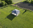 Cu un front stradal de 105 mp, platforma este împrejmuită cu gard și beneficiază de o terasă acoperită și de o casuță de lemn.