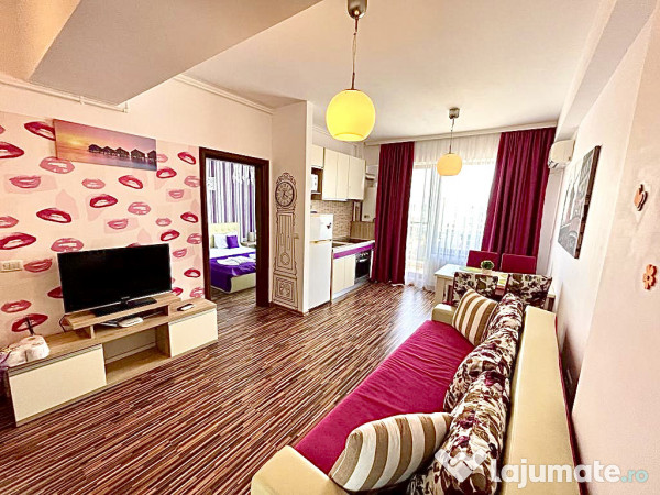Dormitor cu pat matrimonial + canapea extensibilă în living (ideal pentru 4 persoane)