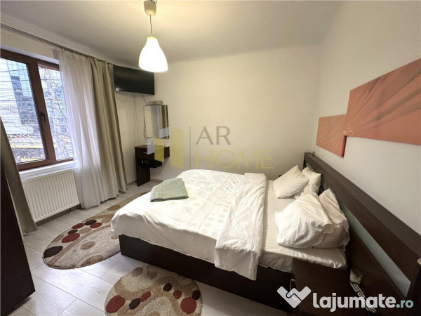 Se inchiriaza complet mobilat si utilat beneficiind de aparat aer conditionat, SMART TV, aragaz, frigider, cuptor cu microunde, masina de spalat rufe, interfon, etc.