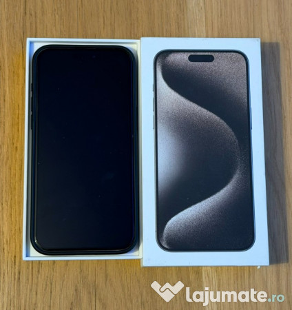 Vând iPhone 15 Pro Max, capacitate 256 GB, culoarea Natural Titanium.