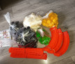 Jocul incluse 8 bile colorate in rosu si albastru care coboara pe piste si un manual cu instructiuni