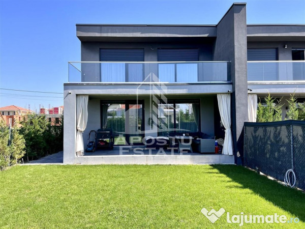 Din portofoliul exclusiv al companiei Apostu Estate, va prezentam cu deosebita placere o jumatate de duplex modern dedicata iubitorilor de rafinament, situata intr-o zona rezidentiala linistita si selecta din Dumbravita.