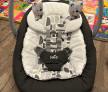 Leaganul arata ca nou si functioneaza normal. Nu are zgarieturi si nici pete. Vine insotit de adaptor pentru priza si baterie pentru vibratii. Separat se pot achizitiona si baterii pentru leganat fara a fi conectat la priza.