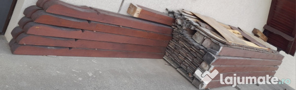 Materialul este de esență rășinoase, depozitat la distanțiere, uscat și protejat în stivă de cca 5 ani, fiind gata de montaj. Grinzile și căpriori sunt finisați și aplicate două straturi de lac pe baza de apă, Aqualac Savana nuanță TEC pe trei dintre laturi și au câte un capăt decupat decorativ (facută floare). La fel lambriul este finisat și lăcuit. Lotul se vinde tot odată, nu separat sau după necesități. Prețul se stabilește la valoarea de piață respectiv grinzi, 28 lei metrul liniar, capriori 24 lei metrul liniar, leațuri 5 lei/ buc., lambriu 35 lei m². Nu se încasează manopera de finisare si lăcuire, motiv pentru care prețul nu se negociază Materialul se poate vedea în Rădăuți. Nu ofer transport.