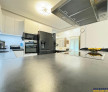 Bucatarie open space, complet echipata cu aparatura AEG: cuptor incorporat, plita cu inductie, cuptor cu microunde, hota tip insula, frigider LG Side by Side;