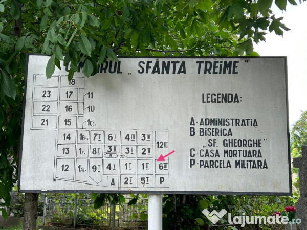 Vand loc de veci in cimitirul Sfanta Treime, Pacurari. Locul este nou, nu este construita o cripta, nu sunt oseminte in interior. Exista o lucrare de suprafata veche din beton care delimiteaza locul.