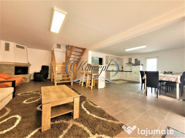 Koncept Imobiliare va propune spre vanzare o casa individuala situata in localitatea Gilau, intr-o zona linistita, cu acces rapid la principalele puncte de interes. Proprietatea beneficiaza de o pozitionare avantajoasa si de o curte generoasa, ideala pentru cei care isi doresc confort si intimitate la doar cateva minute de Cluj-Napoca. Casa este dispusa pe doua niveluri, parter si mansarda, avand o suprafata utila de 160 mp si fiind amplasata pe un teren de 950 mp. Compartimentarea actuala cuprinde 5 camere, o baie, bucatarie, hol, bucatarie de vara, camera tehnica, sas si alte dependinte. Spatiile pot fi recompartimentate cu usurinta, ceea ce ofera flexibilitate in organizarea interioara. Proprietatea dispune de terasa de 15 mp, balcon de 8 mp si o curte de aproximativ 30 mp. Imobilul este finisat modern, cu accent pe functionalitate si confort, fiind complet mobilat si dotat cu electrocasnice noi, nefolosite. Sistemul de incalzire este asigurat prin semineu si aparat de aer cald, iar orientarea sudica ofera luminozitate naturala pe tot parcursul zilei. Gradina de 800 mp completeaza avantajele acestei locuinte, oferind multiple posibilitati de amenajare. Recomandata ca locuinta de familie, aceasta proprietate se evidentiaza prin gradina generoasa, curtea spatioasa si faptul ca este o casa nou construita, disponibila imediat. Pentru informatii complete, programarea unei vizionari sau pentru a afla oferta noastra completa va stam la dispozitie telefonic, prin e-mail sau la sediul agentiei noastre, pe str. Aviator Badescu, nr. 19, Cluj-Napoca.