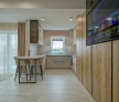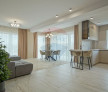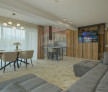 Apartamentul impresionează prin livingul spațios și luminos cu acces către terasă, bucătăria open space complet echipată cu electrocasnice Electrolux, dormitorul generos cu lumină naturală și baia aerisită natural, unde se va monta un panou de sticlă modern. Holul beneficiază de spații inteligente de depozitare încastrate în pereți placați, iar mobilierul de calitate, realizat de Mobexpert și MobiHouse, completează atmosfera elegantă și practică, iar înălțimea camerelor de 2,7 m contribuie la senzația de spațiu și confort.