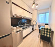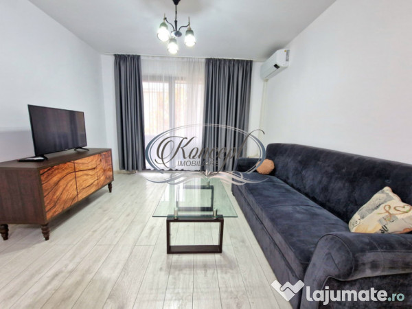 Apartamentul dispune de 85 mp utili, impartiti intr-un living generos cu acces pe terasa, bucatarie inchisa complet echipata, doua dormitoare cu spatii de depozitare integrate si doua bai functionale. Terasa de 10 mp, cu forma dreptunghiulara si deschidere pe toata lungimea apartamentului, creeaza un spatiu placut pentru relaxare, ferit de trafic si cu un nivel ridicat de intimitate. Finisajele sunt calitative, peste standard, iar mobilierul modern si electrocasnicele integrate, inclusiv masina de spalat vase si masina de spalat haine, ofera confort si functionalitate. Sistemul de incalzire in pardoseala, centrala proprie si aparatul de aer conditionat contribuie la eficienta si confortul locuirii pe tot parcursul anului.