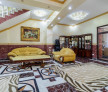 Curtea este pietruită, cu acces dublu și posibilitate de parcare sau amenajare terasă exterioară. Interiorul păstrează un stil elegant, cu finisaje clasice: marmură, vitralii, candelabre, balustrade sculptate și detalii decorative rafinate.