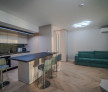 Apartamentul este compus din 2 camere, compartimentare decomandată, cu bucătărie open-space, living luminos și un dormitor spațios. Beneficiază de finisaje și dotări de lux, fiind complet mobilat și utilat cu mobilier executat la comandă (Yuka Mobili) și electronice de înaltă calitate.