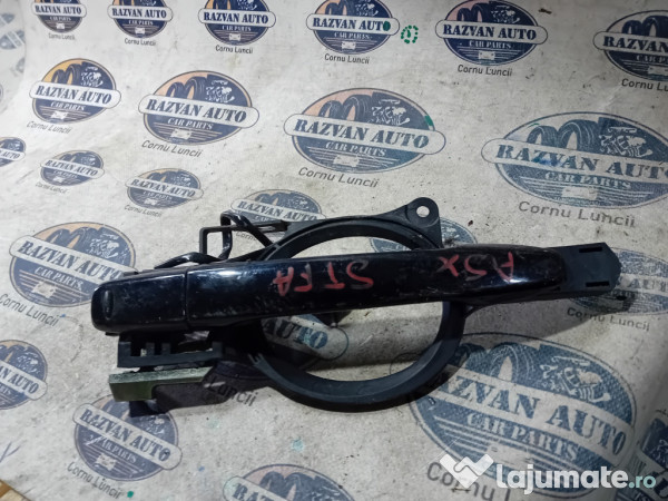 Maner exterior stanga fata Mitsubishi ASX 2012. Piesele comercializate sunt originale, provenite din dezmembrari. Dispunem de o gama larga de piese multimarca. Piesele sunt verificate inainte de a fi puse spre vanzare. In caz de neconformitate piesa se poate returna. Va rugam sa verificati disponibilitatea pieselor telefonic. Trimitem in tara prin curier.