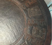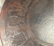 Masă Cafea, rotundă din lemn, acoperită cu piele, embosata cu modele Incase, model 1960, picioare solide din lemn, detașabile, H - 50cm, Dia - 120cm. Masa este în condiție excepțională cu patina timpului intactă