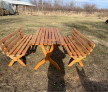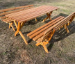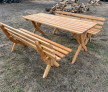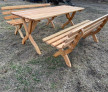 Masa pentru gradina sau terasa cu banci din lemn de cires masiv, culoare natur.