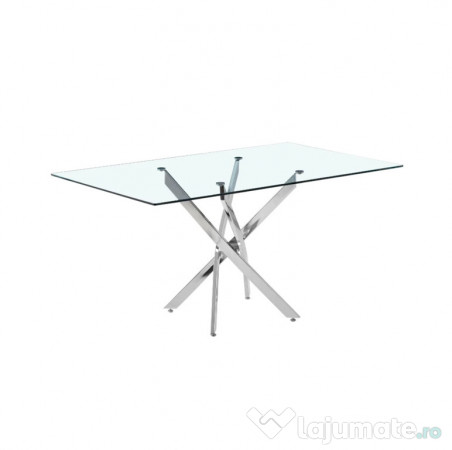 Masă dining cu picioare metalice cromate și blat din sticlă securizata 10 mm grosime, 160X90X75 cm Brillo HARO.