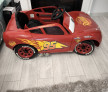 Este o mașină electrică de jucărie pentru copii, modelul Fulger McQueen din franciza Disney/Pixar Mașini.