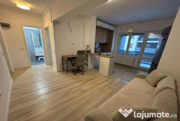 apartament modern cu 2 camere, tip open-space, cu bucătărie open în living și un dormitor separat. Apartamentul este complet mobilat și utilat, ideal pentru un cuplu sau o persoană singură.