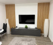 Mobilierul este aproape nou și include o unitate TV cu spațiu de depozitare.