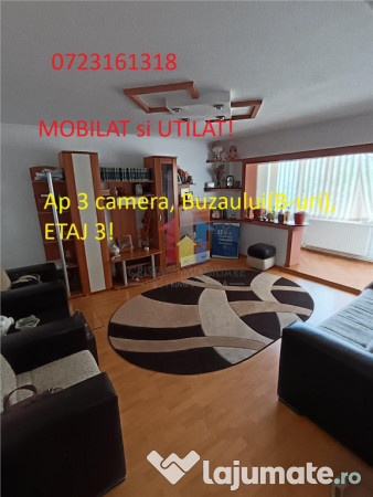 *MOBILAT si UTILAT, Ap 3 camere, ETAJ 3,zona Buzaului(B.uri)-83 mp