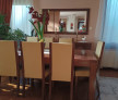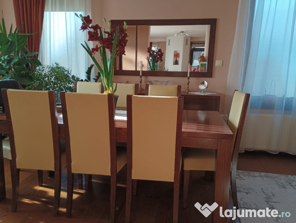 Vand masa wenge cu 8 scaune tapitate (culoare bej), utilizate, dar in stare buna.